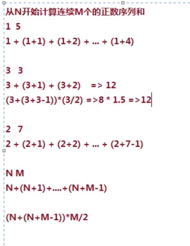//从N开始,连续M个正数序列的和